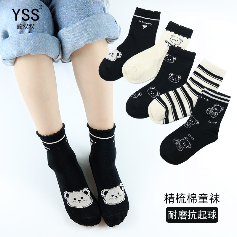 懿双双子供靴下秋冬新作韓国版熊中筒靴下精練綿男大童潮靴下骨なし綿靴下
