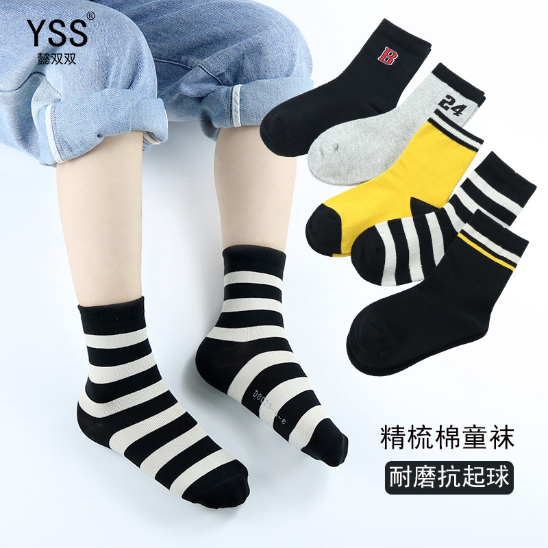 懿の両方の子供の靴下秋冬の新型の厚い韓国版の数字の中で筒の靴下の精櫛の綿の男の子のスポーツの靴下は骨がありません。