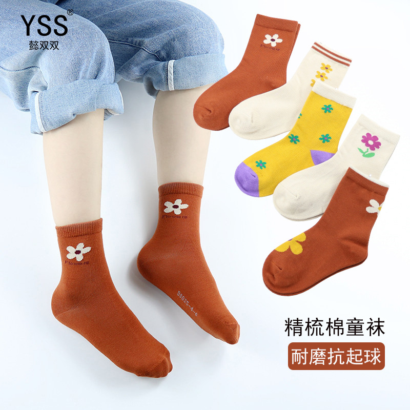 懿の両方の子供の靴下秋冬の新型の厚い漫画の花の中筒の靴下の精練綿の女の子の韓国版の子供の靴下