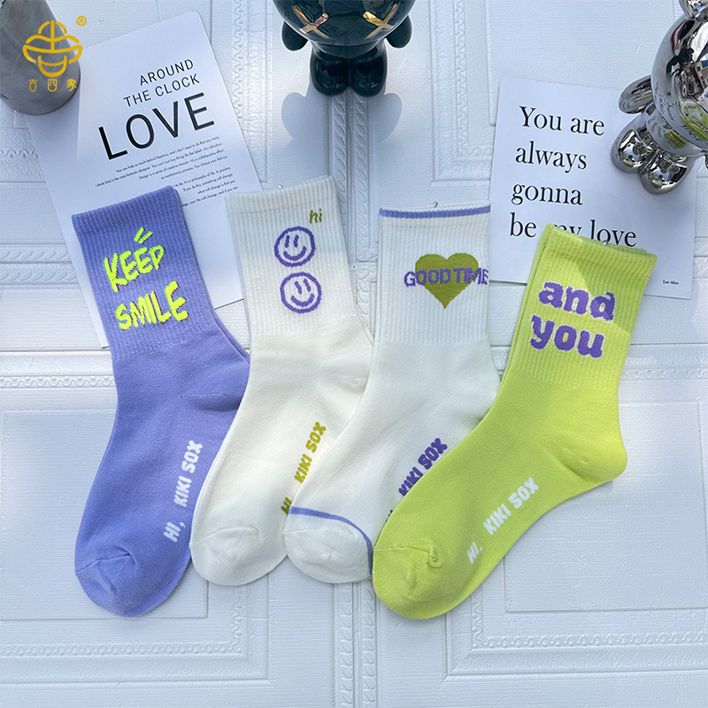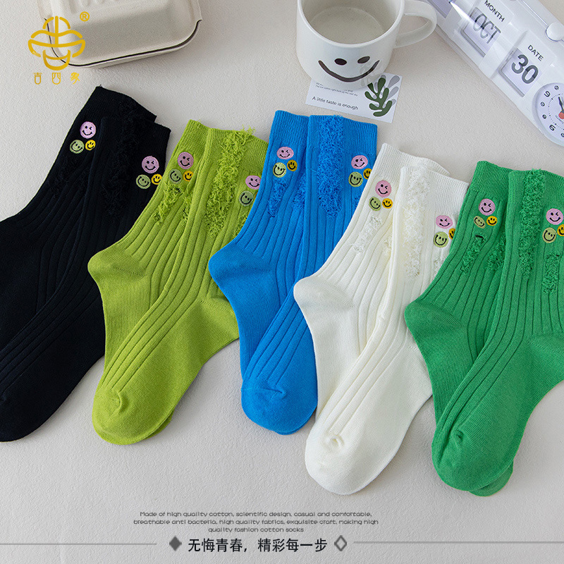 吉四象の靴下の女性の秋冬の新型の韓国版のファッションのブランドの中の筒の靴下の精櫛の綿の笑顔のスポーツの靴下は学生の靴下に合わせます。