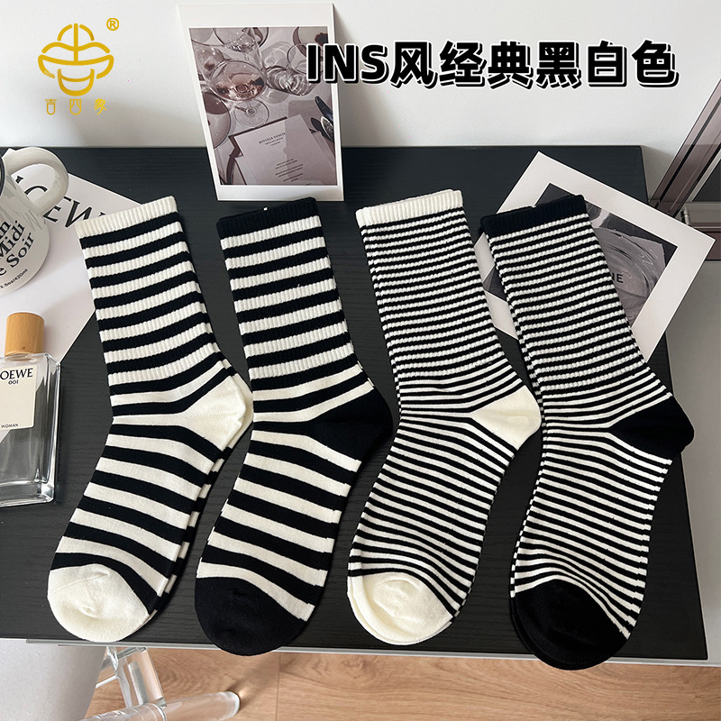 吉四象の靴下の女性の秋冬の新型の韓国版のストライプの高い筒の靴下の精櫛の綿の学院の風の百合の学生は靴下を積みます