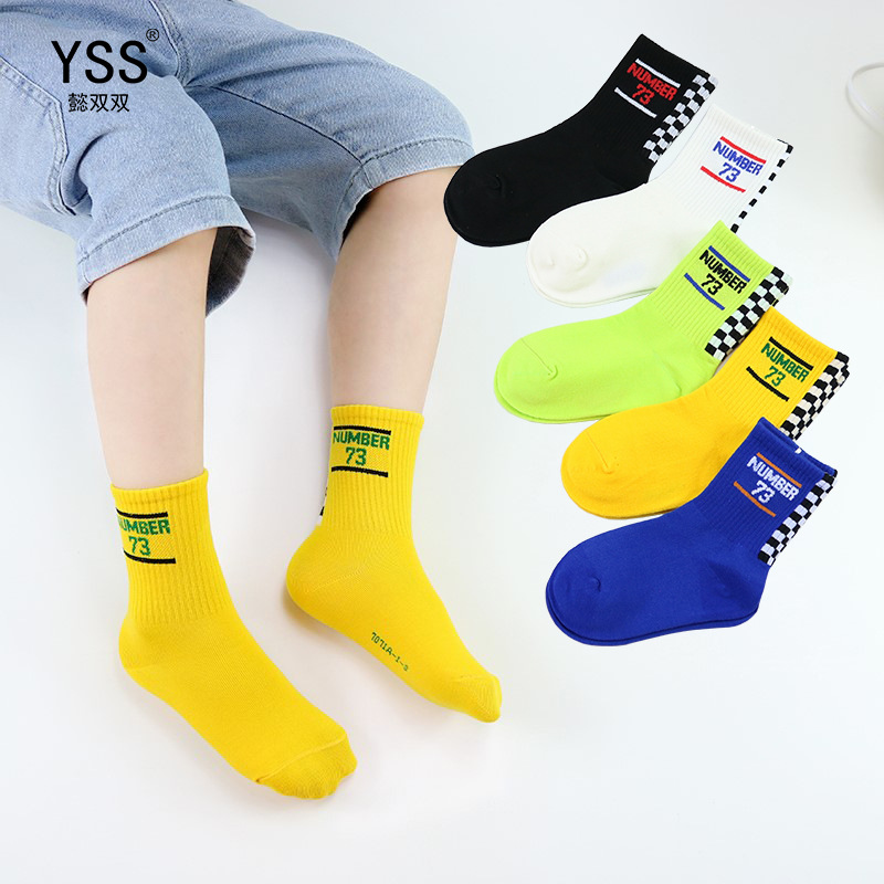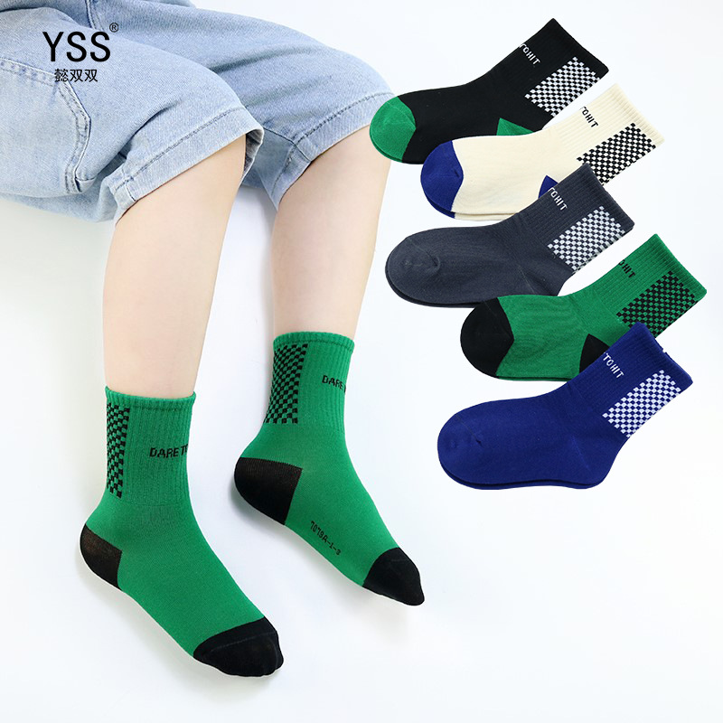 子供の靴下懿の両方の秋冬の新型の韓国版の格子のアルファベットの中で筒の靴下の精櫛の綿の中で大きい子供の運動のファッションの靴下