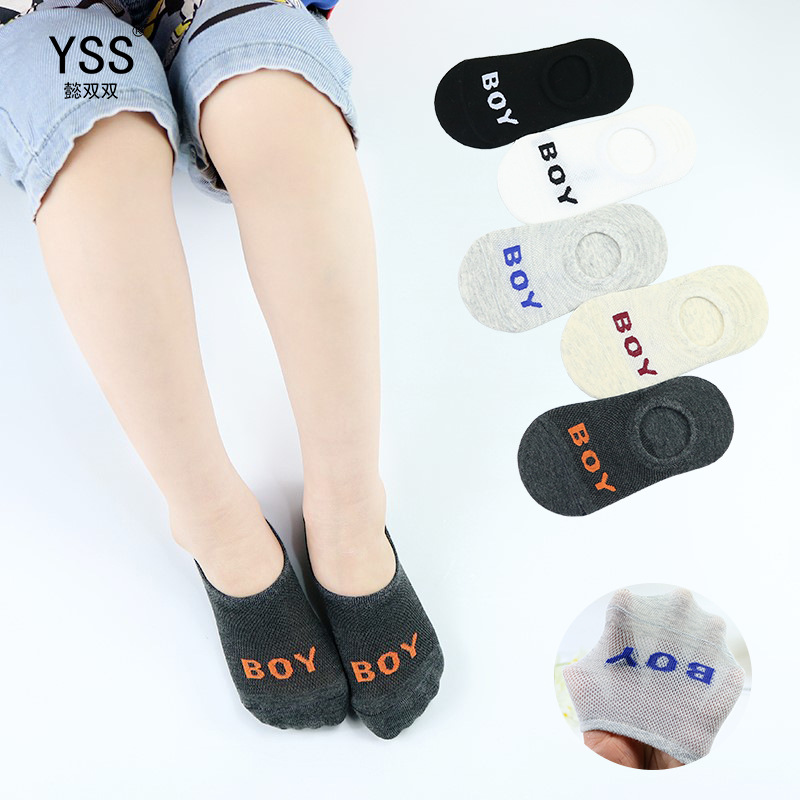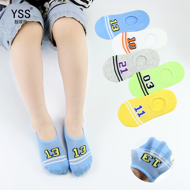 子供の靴下懿の両方の夏のメッシュの薄いモデルの数字の見えない靴下の精練綿のシリコンゴムの滑り止めの男の子のスポーツの靴下