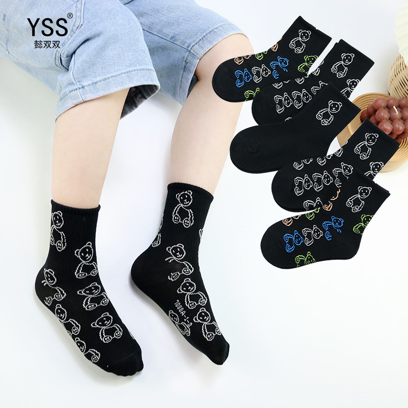 子供用靴下懿双秋冬新作アニメ熊中筒靴下精練綿男女子供黒スポーツファッション靴下
