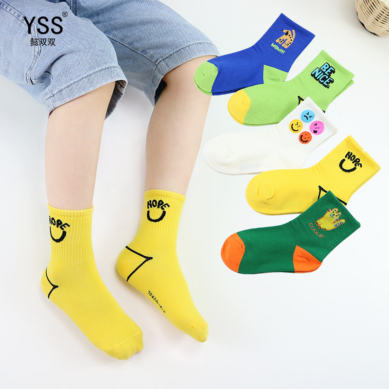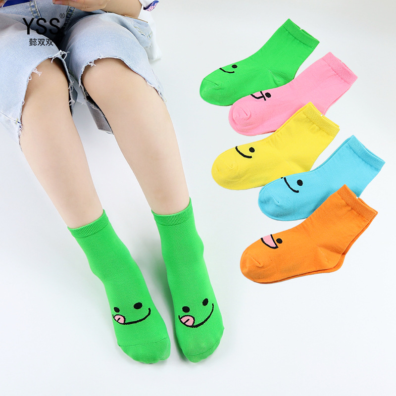 子供の靴下懿の両方の秋冬の新型アニメは笑顔の中筒靴下の精練綿の赤ちゃんの靴下の学生の綿の靴下をからかいます。