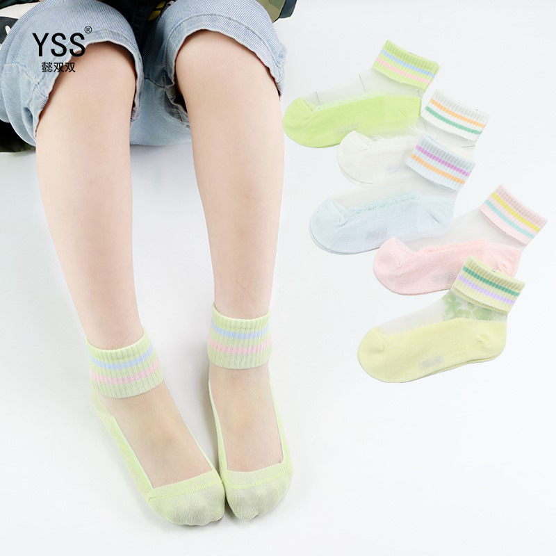子供の靴下懿の両方の夏の新型韓国のストライプの水晶の船の靴下の精練綿の底の女の子の氷の糸のソックス