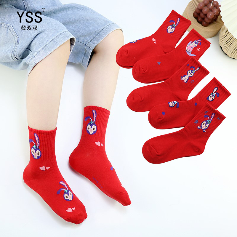 子供の靴下懿の両方の秋冬の新型アニメスター黛露の赤い中筒の靴下の精練綿の女の子の新年の赤い靴下