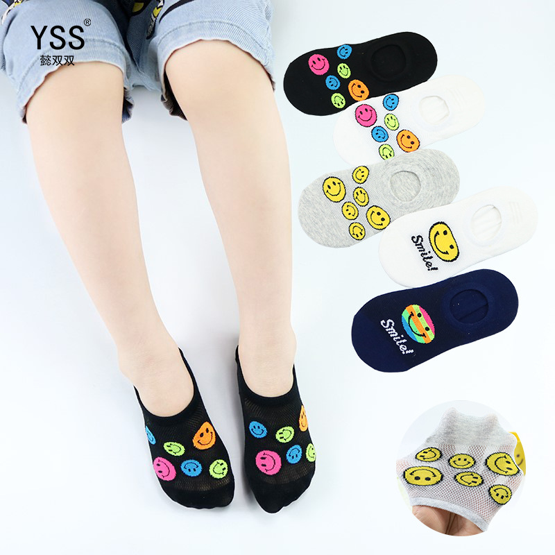 子供の靴下懿の両方の夏のメッシュの薄いモデルの漫画の笑顔のステルスの靴下の精練の綿のシリコンの防脱の赤ちゃんの靴下