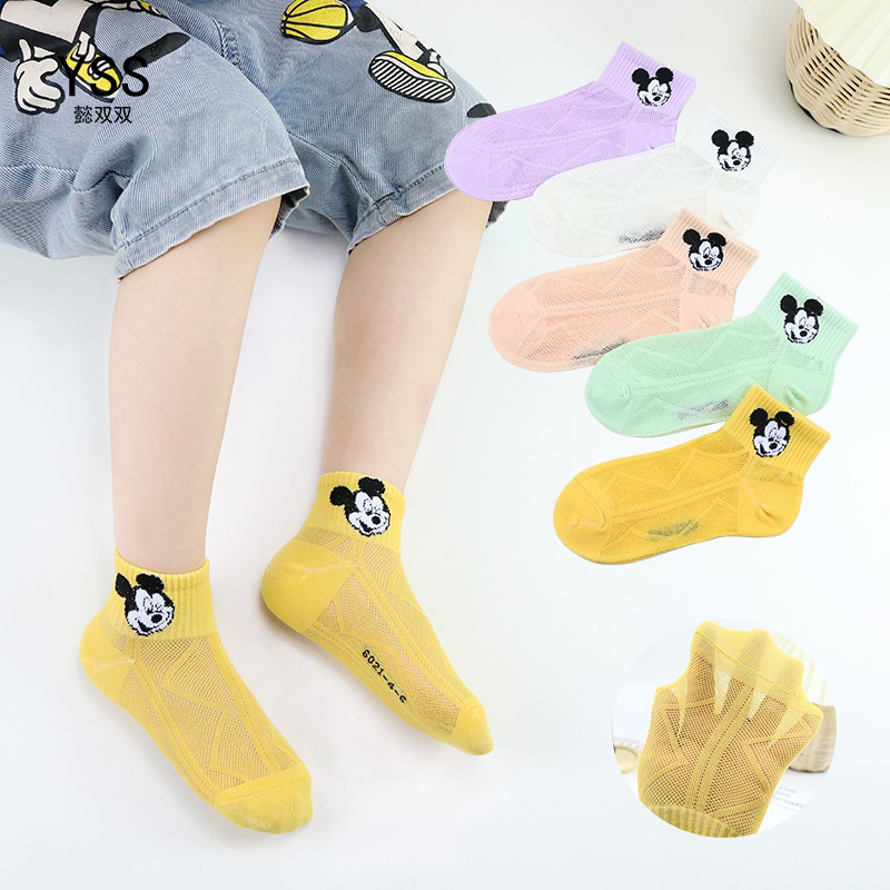子供用靴下懿双夏新作アニメミッキーマウス船靴下精練綿超薄大網目可愛い赤ちゃん靴下