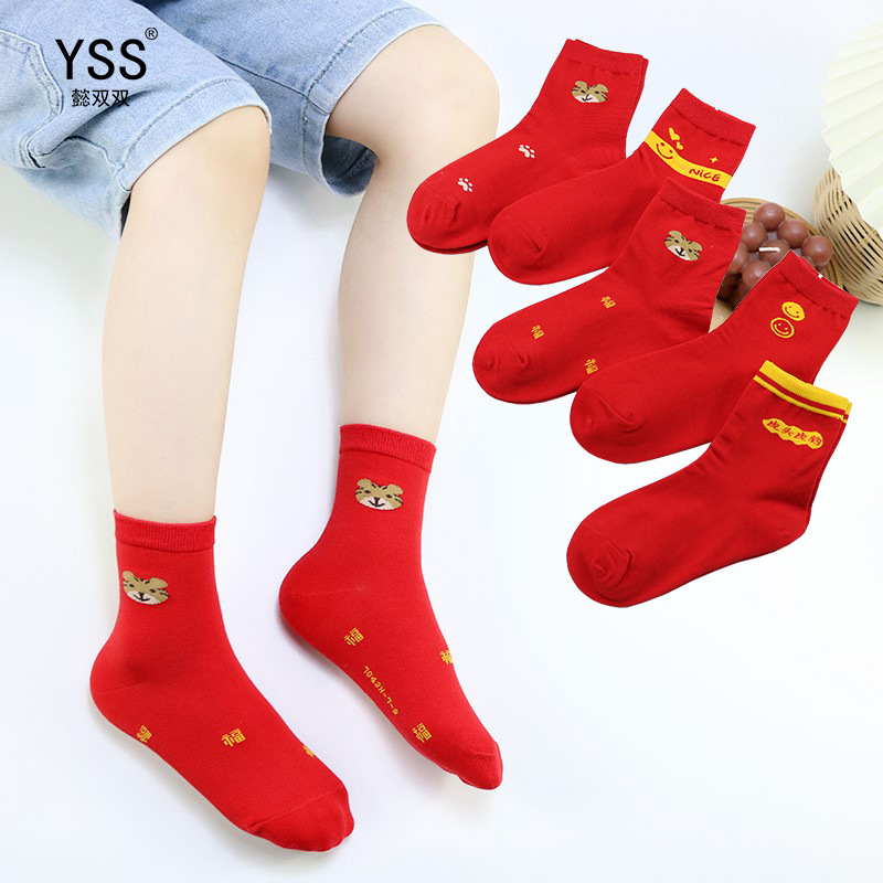子供の靴下懿の両方の秋冬の新型アニメの虎の赤い中筒の靴下は綿の本命の年の新年の子供の靴下をコーミングします。