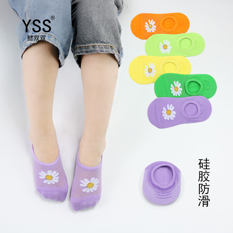 子供用靴下懿の両方の夏のネットの薄いタイプの韓国版の小さいデイジーの隠れた靴下の精櫛の綿のシリコンの防脱の赤ちゃんの靴下