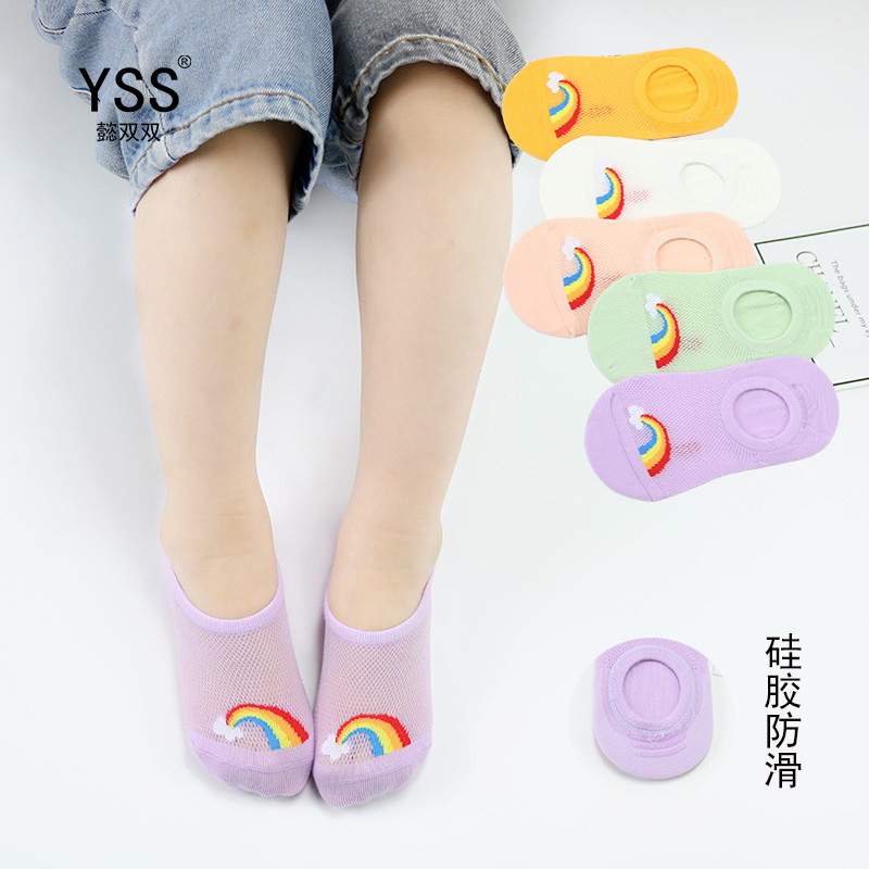 子供の靴下懿の両方の夏のメッシュの薄いモデルの漫画の虹の隠れた靴下の精練綿のシリカゲルの脱落防止の赤ちゃんの靴下