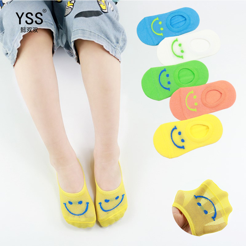 子供の靴下懿の両方の夏のメッシュの薄いモデルの漫画の笑顔のステルスの靴下の精練の綿のシリコンの防脱の赤ちゃんの靴下