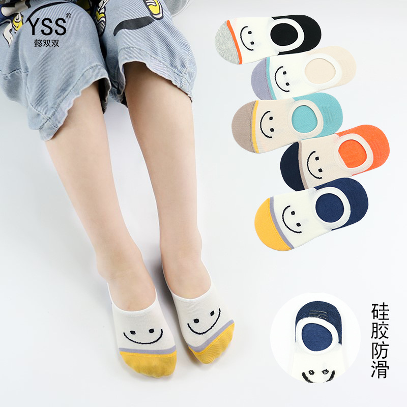 子供の靴下懿の両方の春と夏の新しいアニメの笑顔が色の隠れた靴下にぶつかって、綿のシリカゲルをコーミングして、赤ちゃんの靴下を脱ぐのを防ぎます。