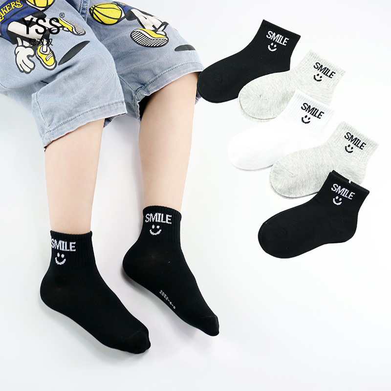 子供の靴下懿の両方の春夏の新型韓国版のアルファベットのソックスの精練綿の男の子のスポーツの靴下の黒い灰色の綿の靴下