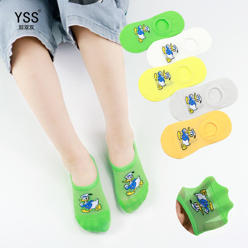 子供用靴下懿双夏網眼薄型アニメ唐老鴨隠れ靴下精櫛綿シリカゲル脱赤ちゃん靴下