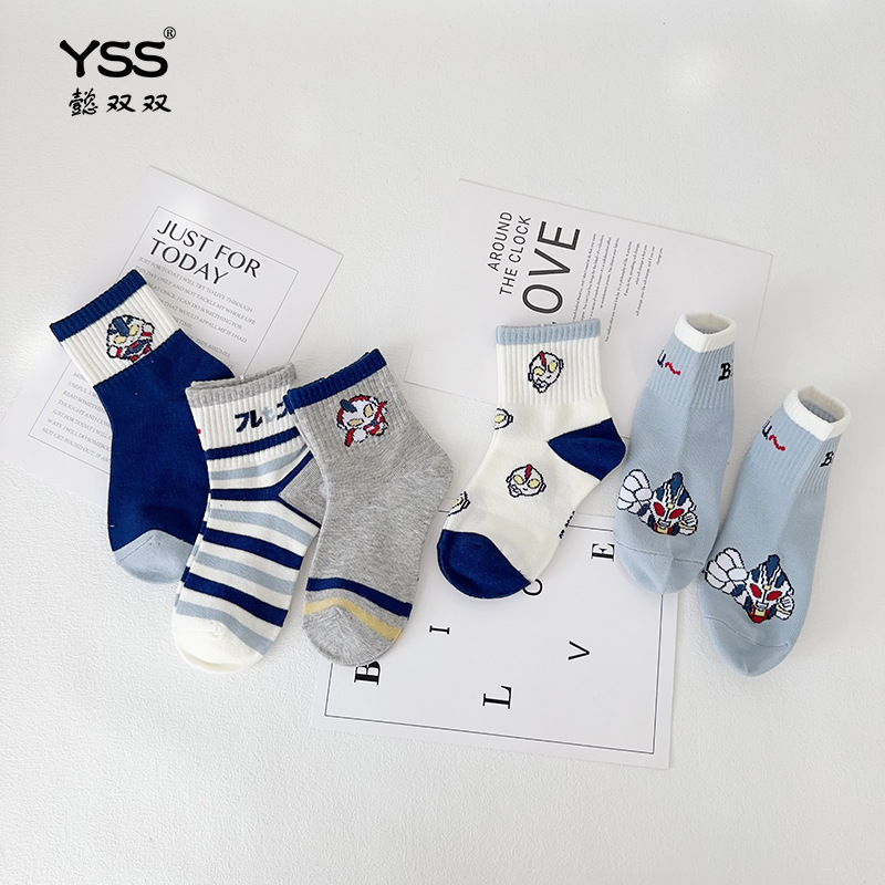 懿の両方の子供の靴下秋冬の新型アニメの中で靴下の精練綿の男の子の骨のない靴下の学生のファッションの靴下