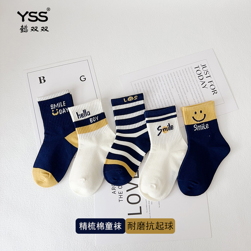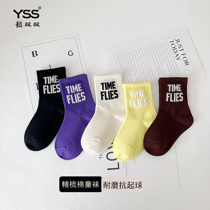 懿双双子供靴下秋冬新作アニメ笑顔中筒靴下精練綿アルファベットスポーツ靴下ab面潮靴下