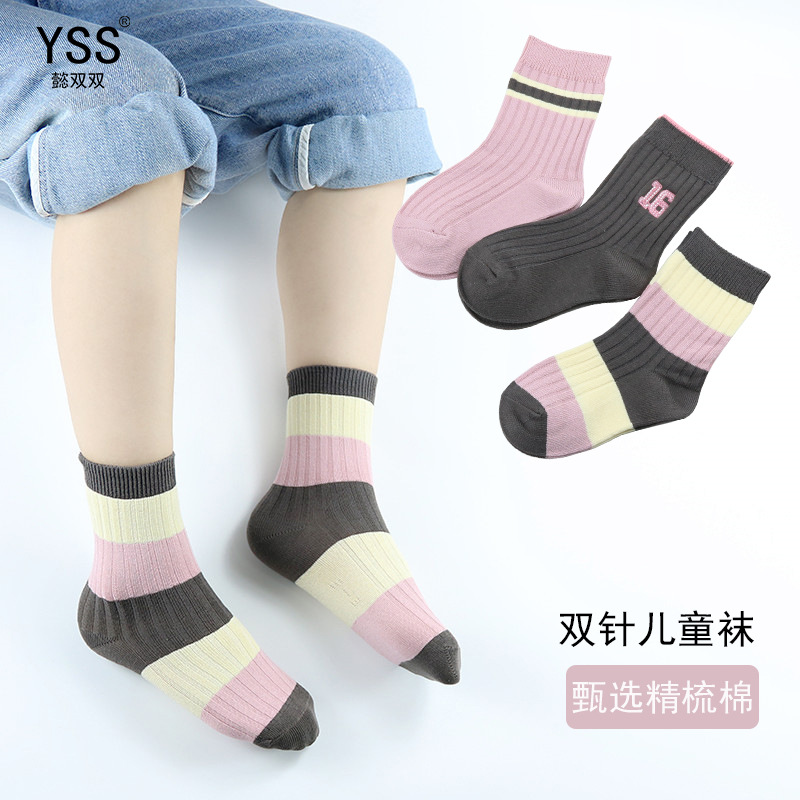 懿の子供用靴下秋冬の新型韓国版のアルファベットの中筒の靴下の精練綿のストライプの双針の子供の靴下のスポーツの靴下