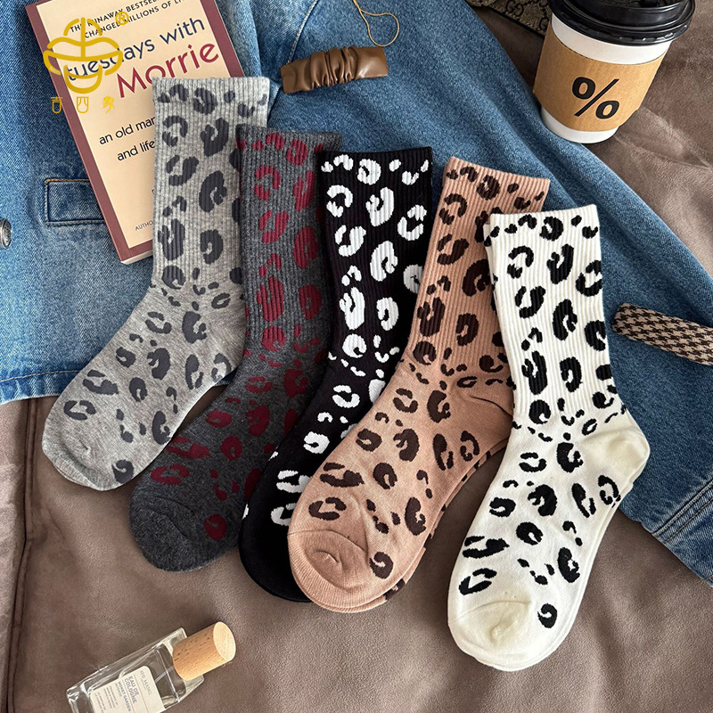吉四象の靴下の女性の秋冬の新型のネットの赤い安可は豹の紋様の中の筒の靴下を引っ張ります。