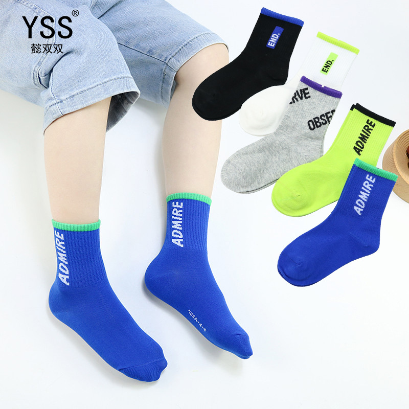 懿の両方の子供の靴下秋冬の新型韓国版のアルファベットの中筒の靴下の精練綿の男の子の学生の靴下のファッションの子供の靴下