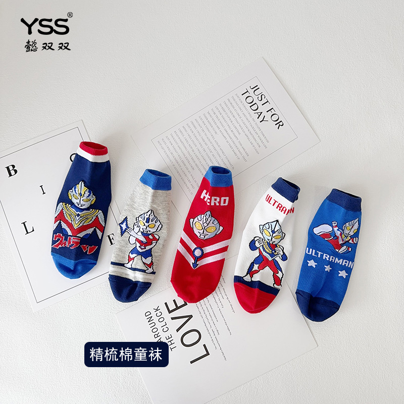 懿の両方の子供の靴下の夏の新型の網の目の通気性の潮牌のアルファベットの短い靴下の精練綿の男の子の運動の綿の靴下
