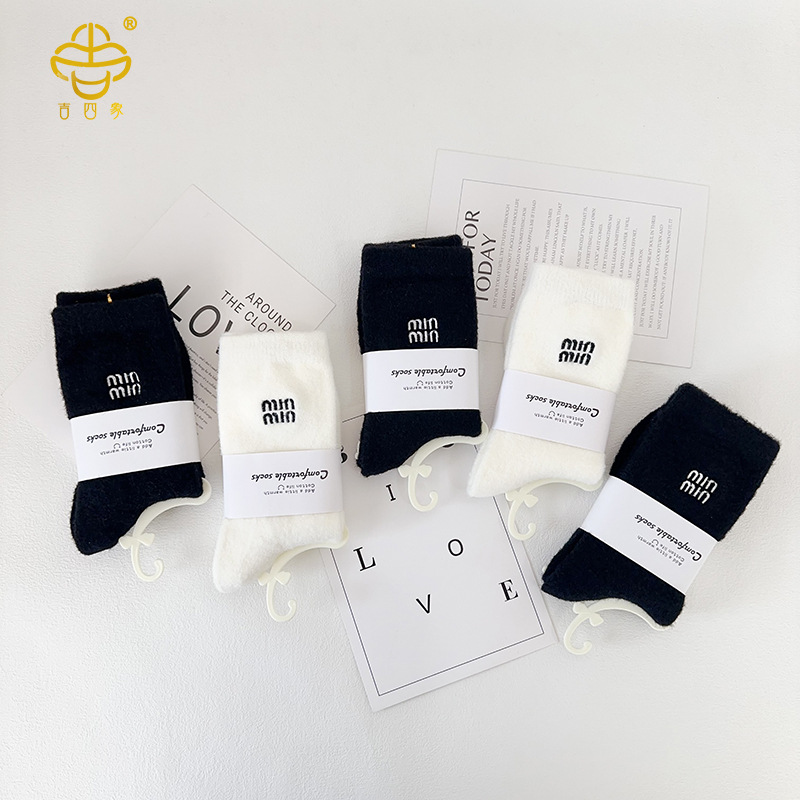 吉四象の靴下の女性の冬の新型の韓国版の刺繍のアルファベットの中筒の靴下の両面の絨毯は厚い保温のオーストラリアの絨毯の女性の靴下を温めます。