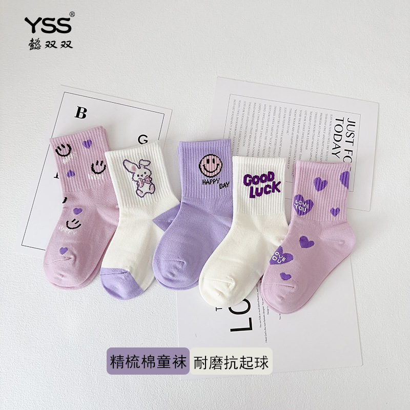 懿の両方の子供の靴下秋冬の新型アニメの笑顔の中筒の靴下の精練綿の韓国版の笑顔の女の子のスポーツの靴下