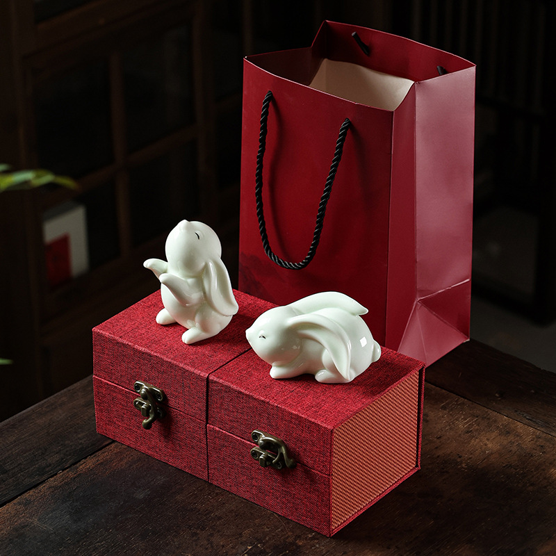 徳化白磁の十二生肖のウサギの逸品はお茶を飼うことができます。
