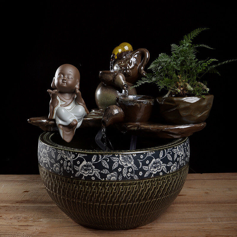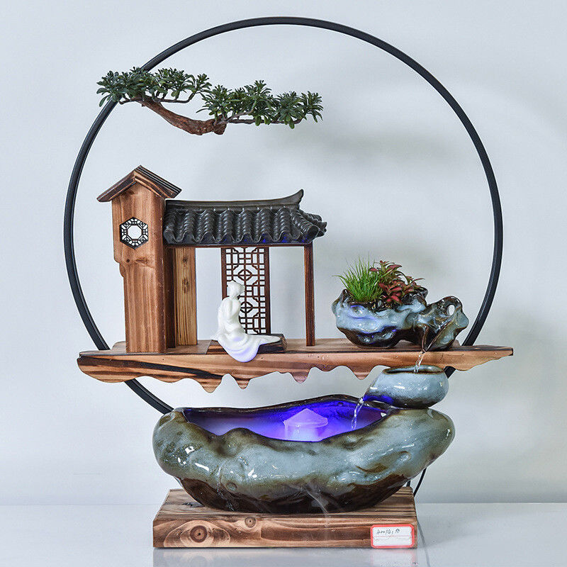 セラミック流水置物空気加湿器中国式リビングオフィスデスクトップ家庭招財循環流水置物