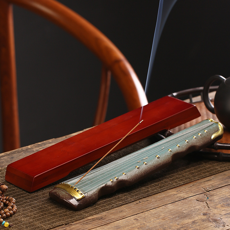 青沈創意伏古琴線香炉家庭用室内創意臥香炉沈香檀香薫香炉挿入盤