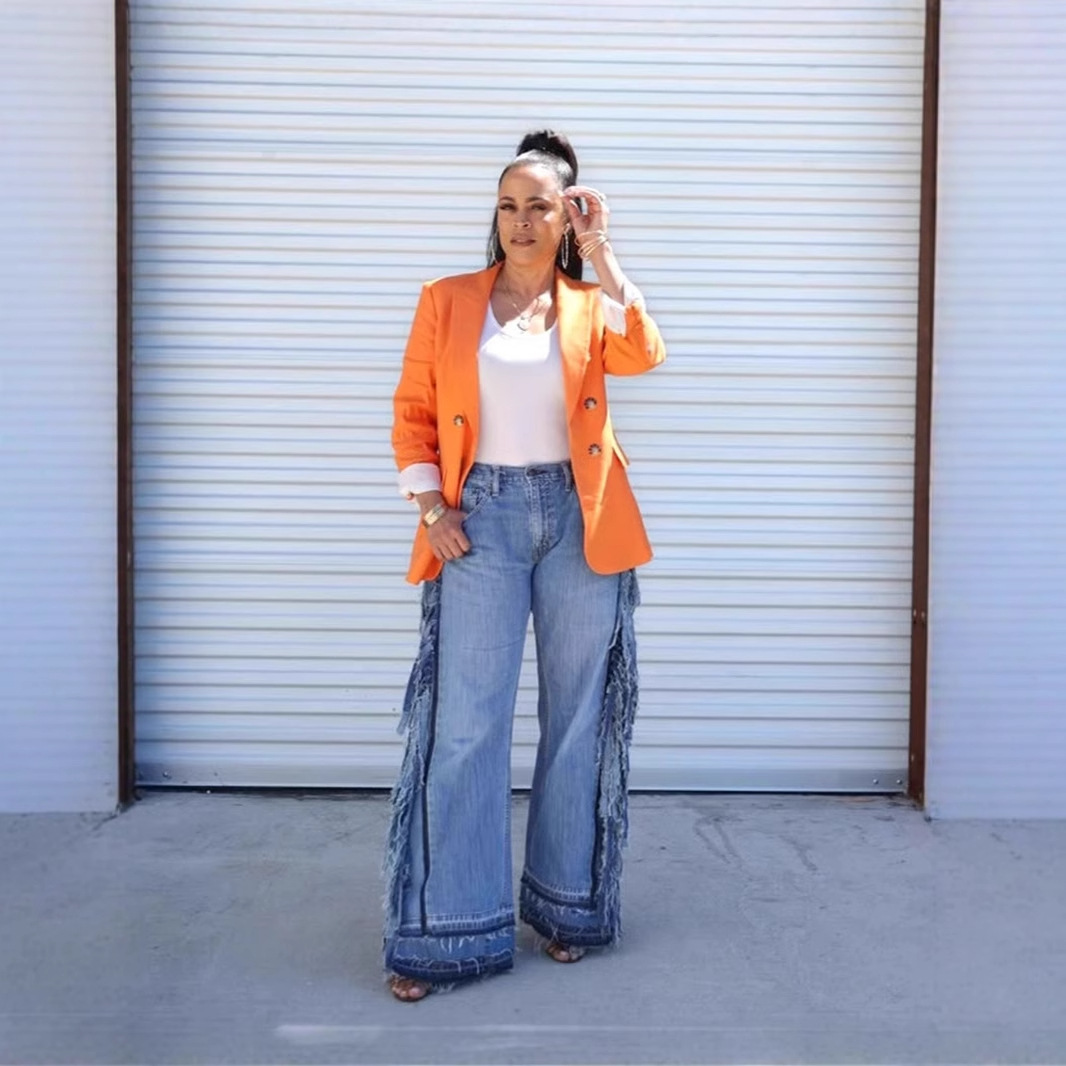 2025 クロスボーダーヨーロッパとアメリカのレトロウォッシュタッセルワイドレッグジーンズ女性 y2k ホットガールファッションハイウエストストレートパンツ