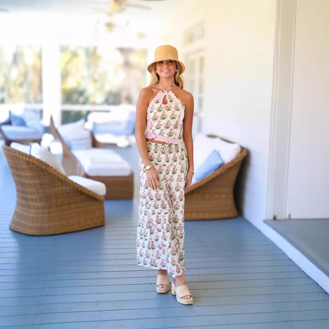 クロスボーダー欧米2025春夏新作カジュアル透かし彫り気質女装清新風サスペンダースカートスーツ