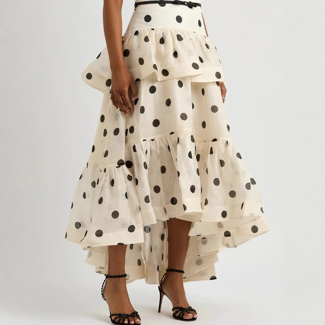 国境を越えた欧米のポイントのロングスカートの女性の春夏の新型のハスの葉の縁の不規則なポイントの中の長いタイプのフォークのケーキのスカート