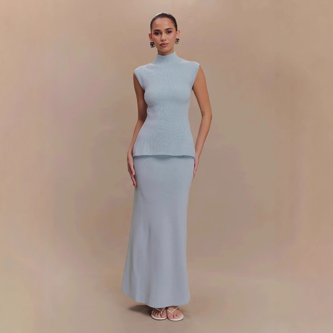 欧米風2025春秋新型クロスボーダー女装ファッションニット高腰包尻半身スカートカジュアルスーツ女性