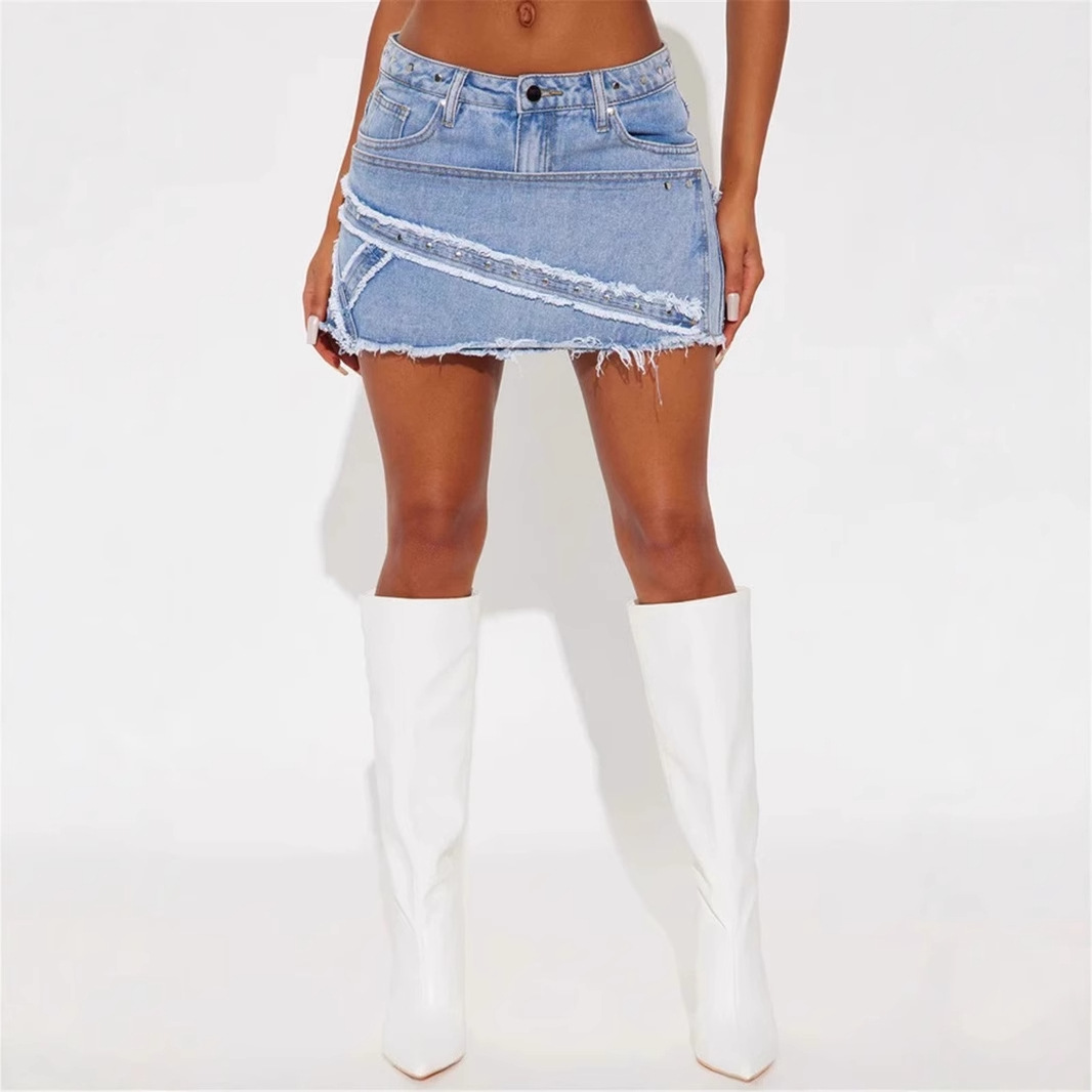 アメリカのレトロな流行の揚げ物の街のデニムは半身のスカートの女性の2025春夏の新型のデザイン感をつなぎます。