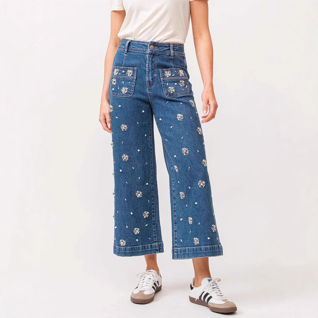 25国境を越えた欧米独立駅アマゾンの対外貿易カウボーイ釘珠がジーンズの高腰広脚ストレートパンツ女