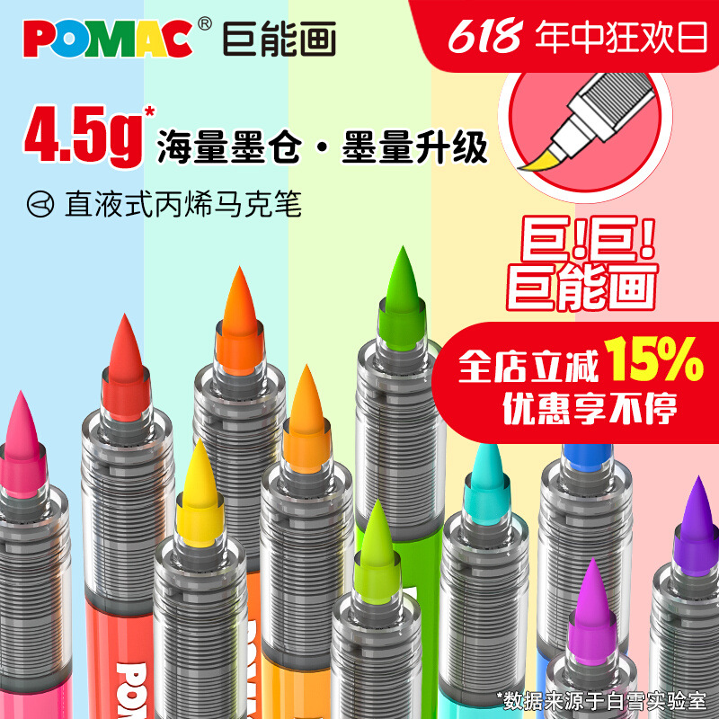Xuebai POMAC ストレート液体ソフトヘッドアクリルマーカーペン学生用不透明色積み重ね可能な色洗えるメーカー
