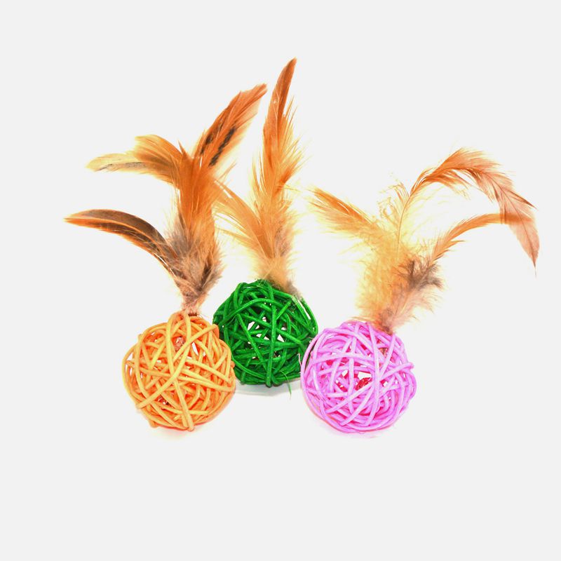 新しい猫のおもちゃはペットの猫のインタラクティブな藤のボールの羽の鈴のボールから退屈なアマゾンのメーカーを解消します。