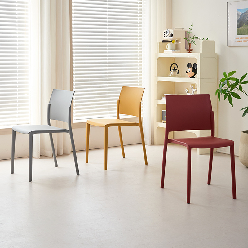 現代のシンプルな家庭用プラスチック製の背もたれ椅子は、カジュアルなリビングチェアを積み重ねて置くことができます。
