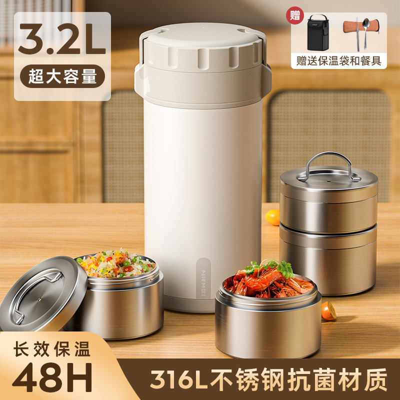 Enmei 24 時間超長時間断熱ランチボックスバケツ 316 ステンレス鋼学生大容量 3L ポータブル 4 層オフィスワーカー