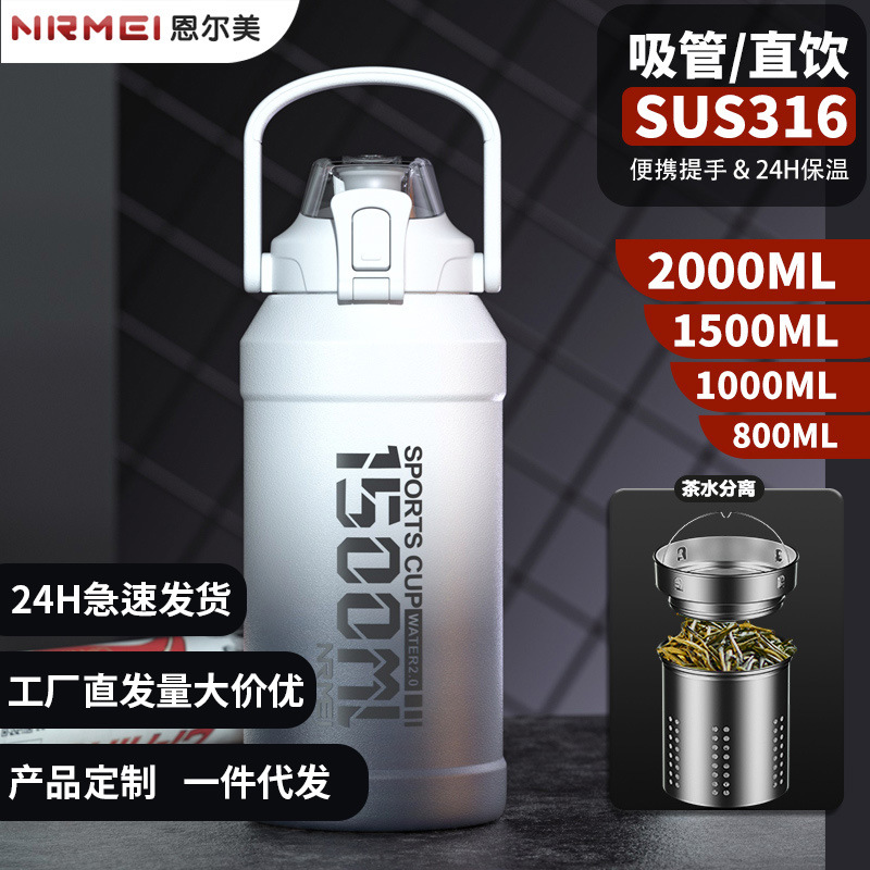 恩爾美316ステンレス水筒夏保冷新型保温カップ屋外携帯運動大容量コップ