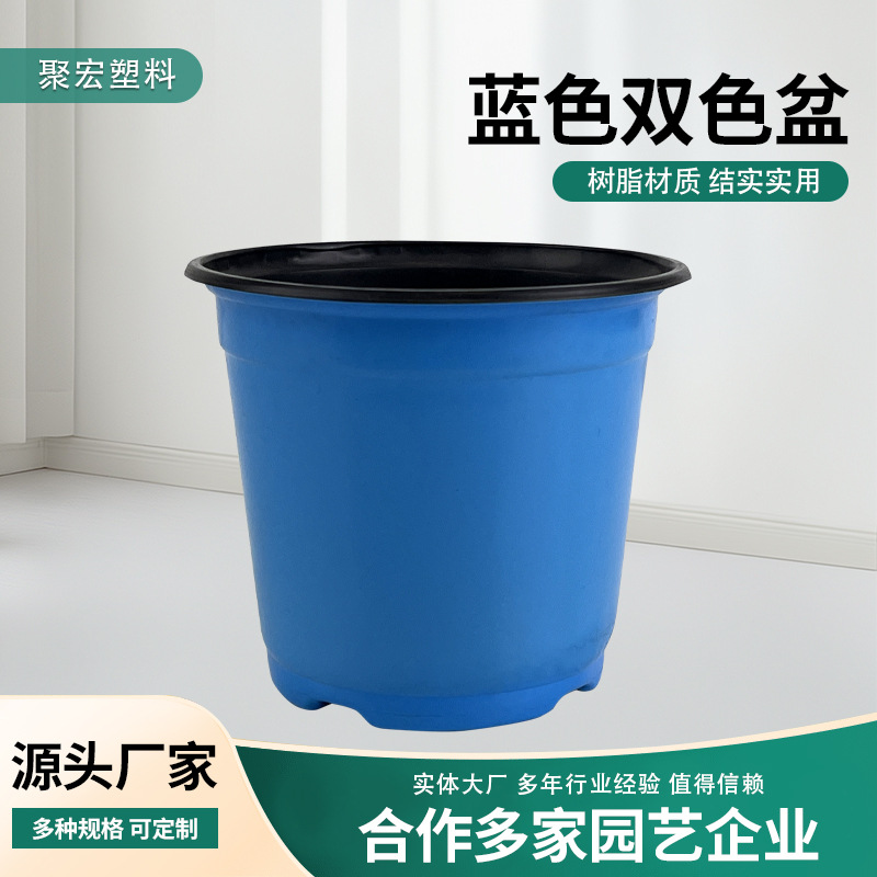 青色の二色鉢、厚手のプラスチック苗鉢、花鉢、緑の植物苗床、二色花鉢、花と緑の植物鉢