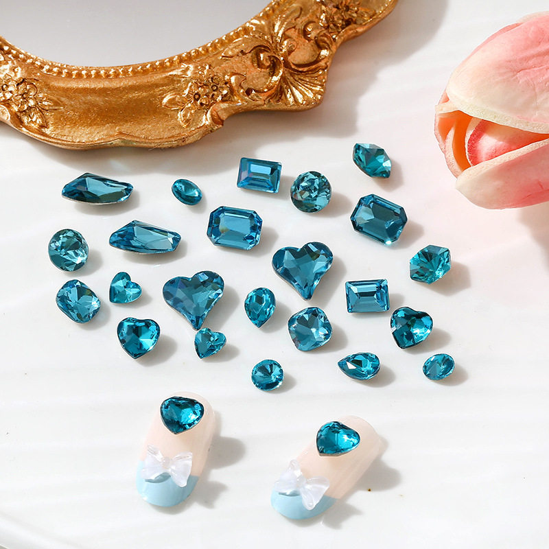 クロスボーダー大型パッケージ尖底特殊形状ダイヤモンドスーパーフラッシュレイクブルーネイルアートジュエリーダイヤモンドK9多面ラブダイヤモンドパイルダイヤモンドジュエリー