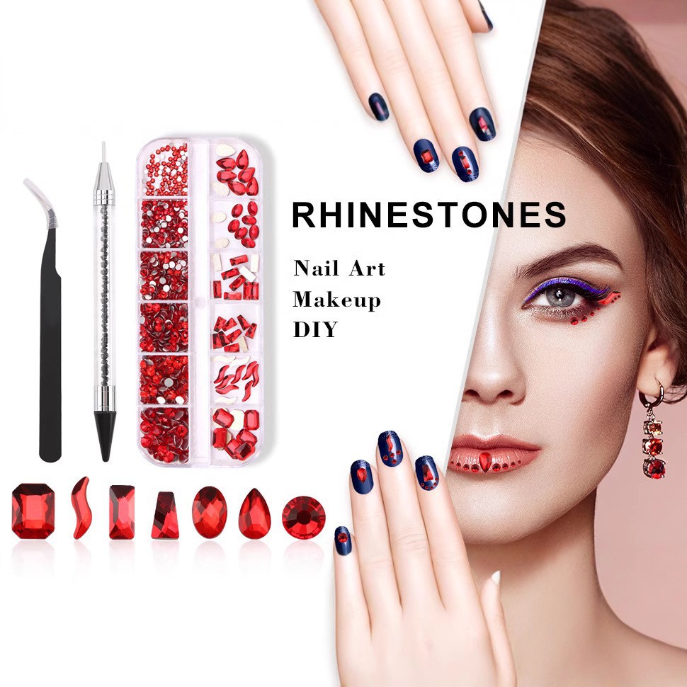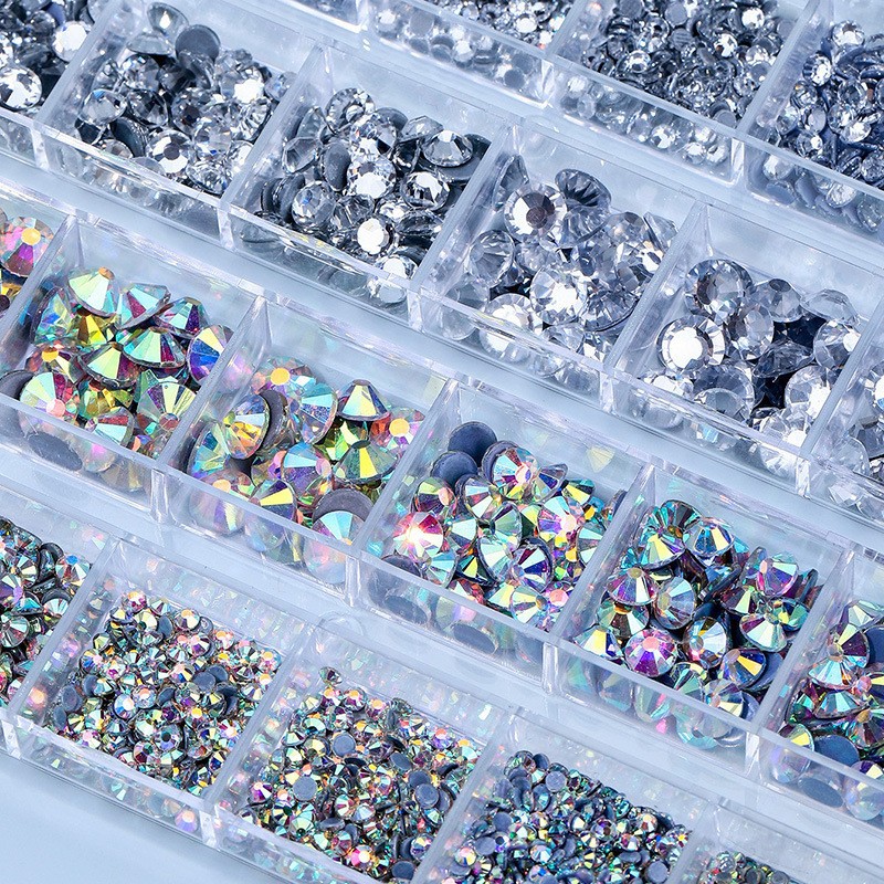 クロスボーダー高級ラインストーンセット12グリッド、混合サイズ、熱溶着接着剤付きラインストーン、服飾用ラインストーン、DIY、保温カップデコレーション