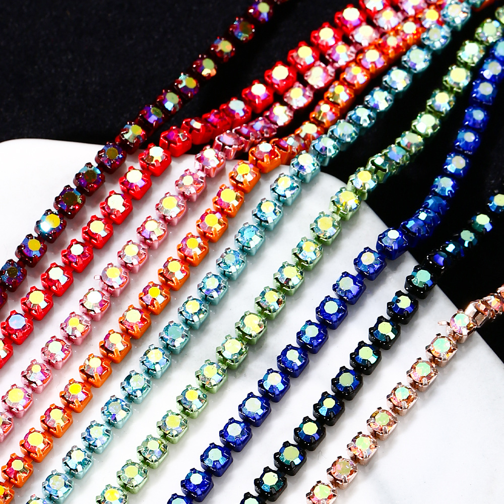 クロスボーダー新しい電気泳動爪チェーン小さなパッケージラインストーン AB カラー単列高密度ドリルチェーン diy 携帯電話ケースジュエリー
