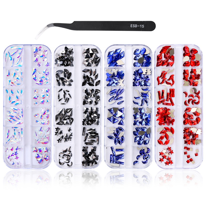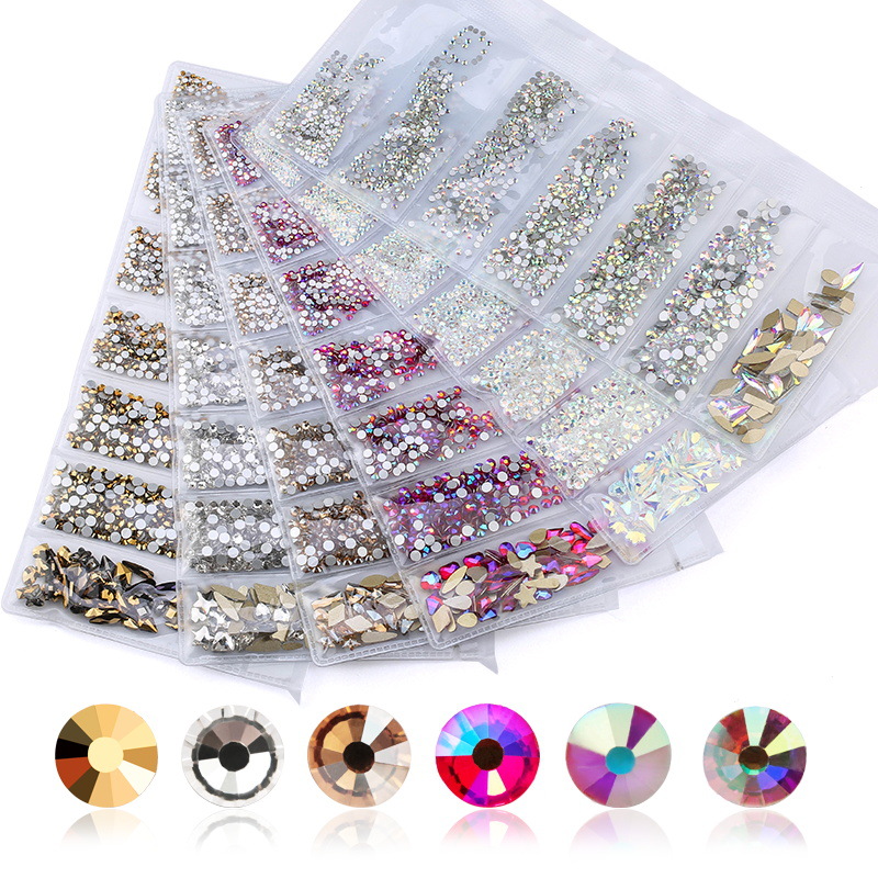 国境を越えた新製品メッキ平底ネイルアクセサリーガラス異形ドリルセット爪装飾diyアクセサリー部品