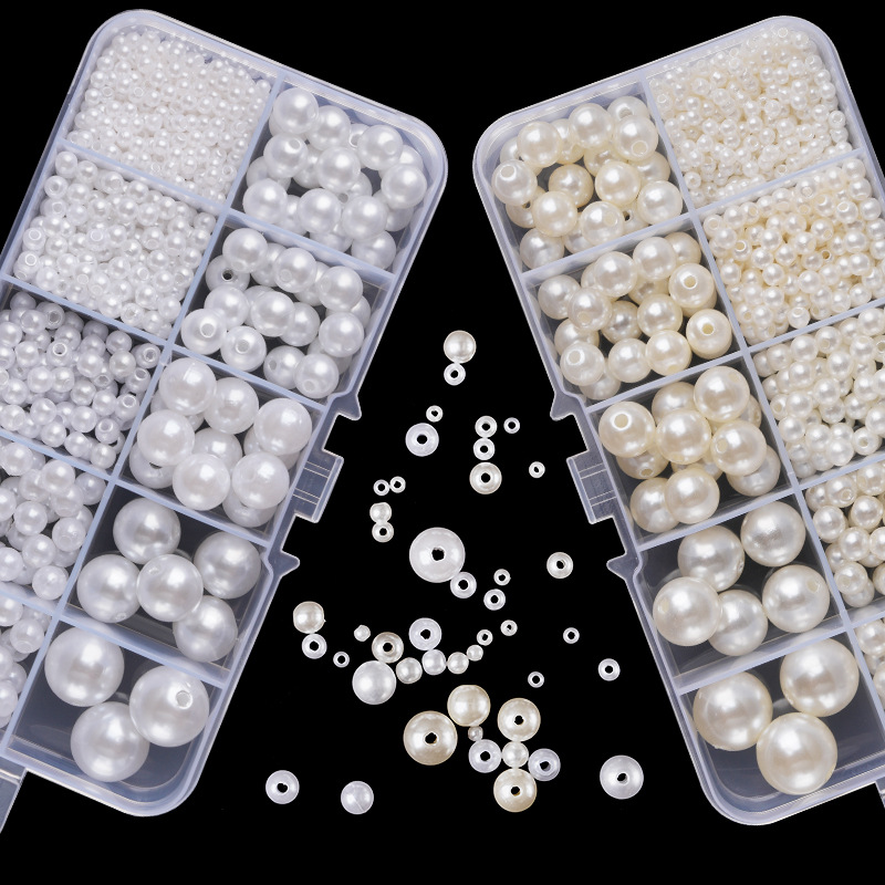 越境新ABS模造真珠セットボックス入りDIYヘアバンド材料パックブレスレット穴あき真珠アクセサリーパーツ卸売