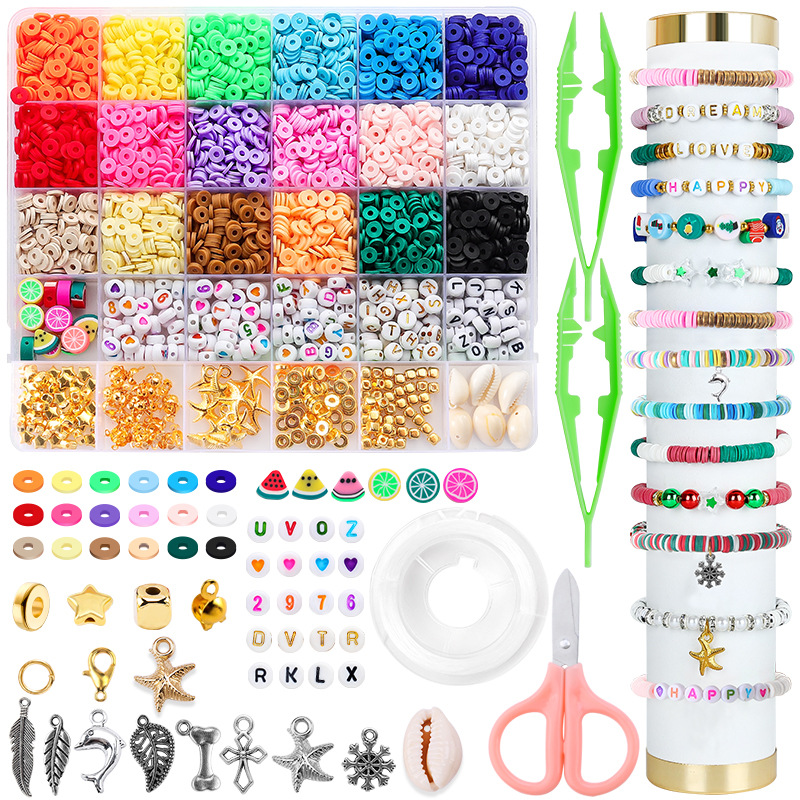 26格ボヘミアン風diy柔らかい陶器のアクセサリーのアルファベットのビーズのチェーンブレスレットのビーズのスペーサーの柔らかい陶器のセット