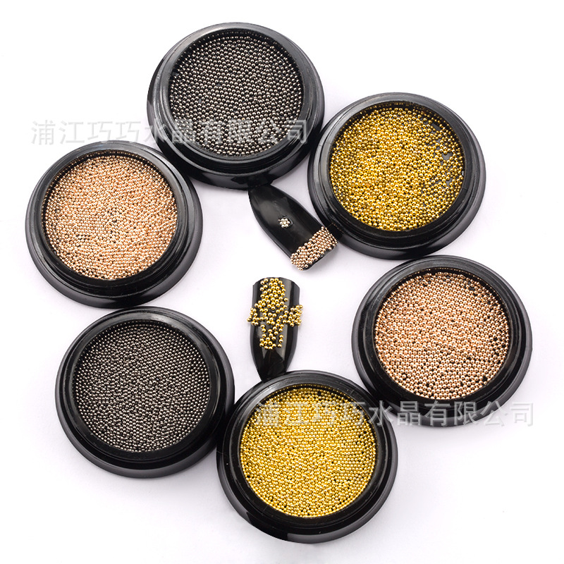 越境で人気のネイル用スチールビーズ0.8mm/1.0mm DIYネイルデコレーションアクセサリー、メタルマイクロビーズ、4色展開